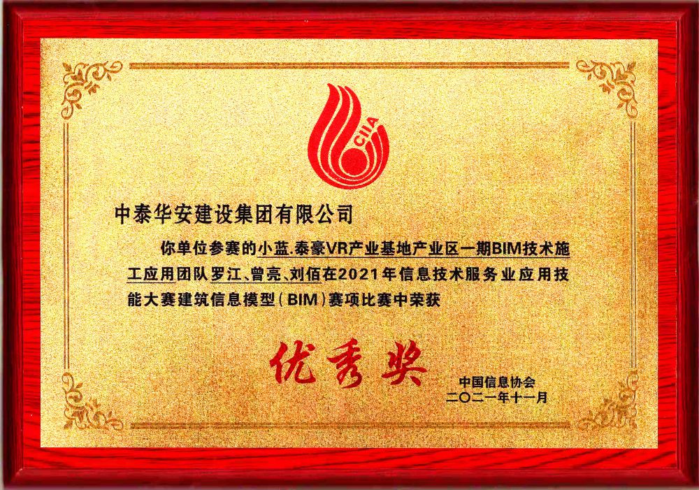 >2021年信息技术服务应用技能大赛建筑信息模型(BIM)优秀奖
