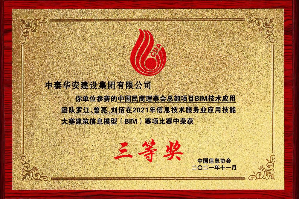 >2021年信息技术服务应用技能大赛建筑信息模型(BIM)三等奖