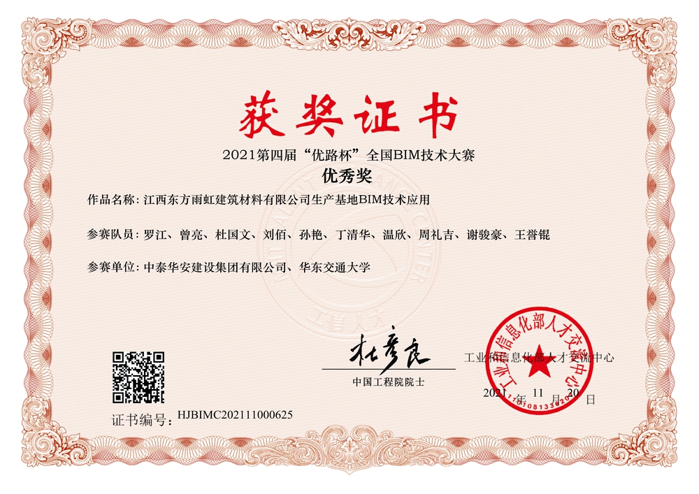 >2021第四届“优路杯”全国BIM技术大赛优秀奖-江西东方雨虹生产基地